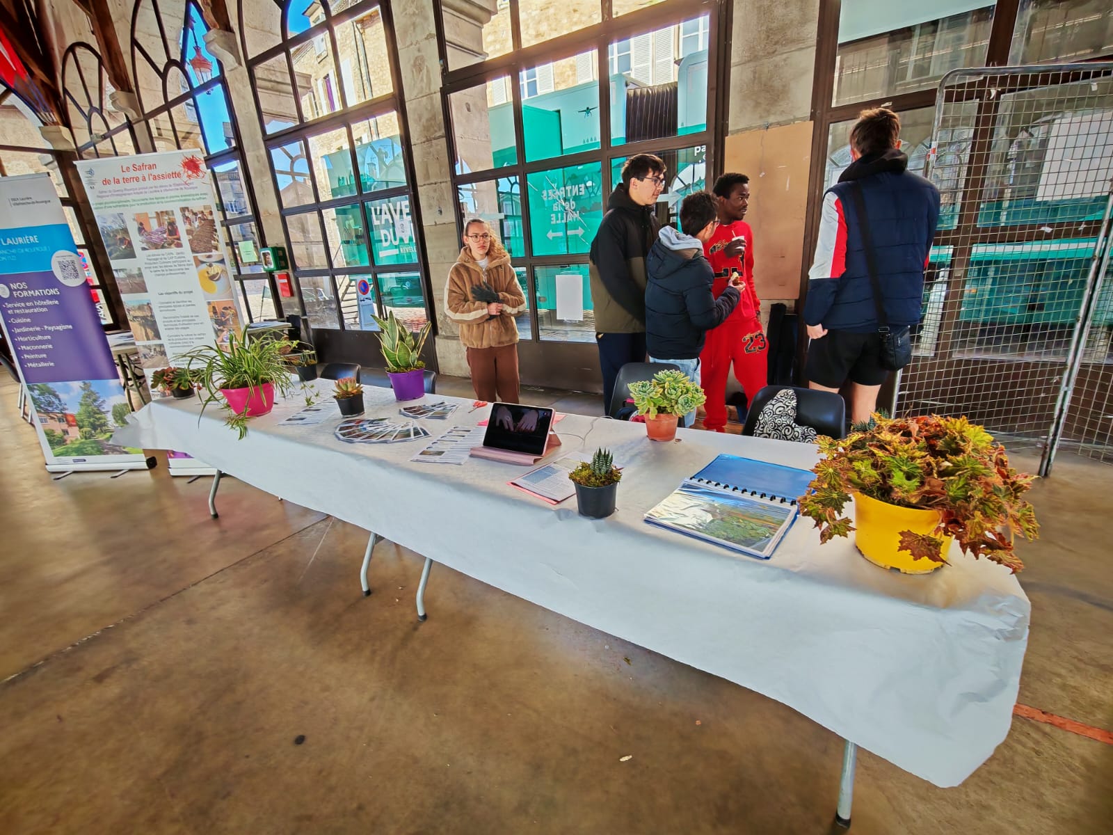 Les élèves du CAP Métiers de l'Agriculture option production Horticulture et production légumière et du CAP Jardinier paysagiste ont participé au forum autour du Camion du Vivant qui a eu lieu les 1, 2 et 3 décembre 2025 à Villefranche-de-Rouergue. Accompagnés de leurs enseignantes, Mmes CUVELIER et PEZOUS, Ils ont présenté aux collégiens leur formation.